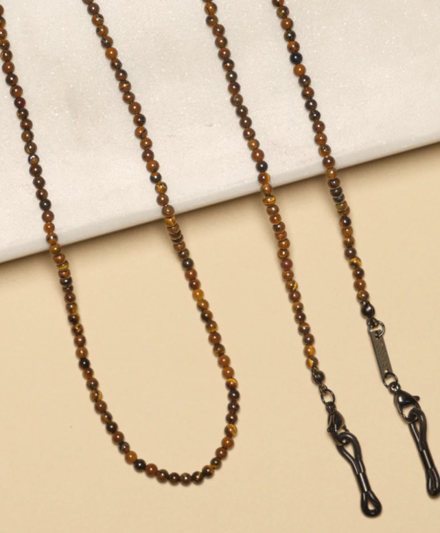 Het Adam brillenkoord combineert eenvoud met stevigheid. Gemaakt van duurzame glaskralen in diepe bruintinten, houdt het je bril of zonnebril veilig én stijlvol op zijn plek. Ontworpen voor dagelijks gebruik – van kantoor tot buitenactiviteiten. Een functioneel accessoire met een mannelijke uitstraling.